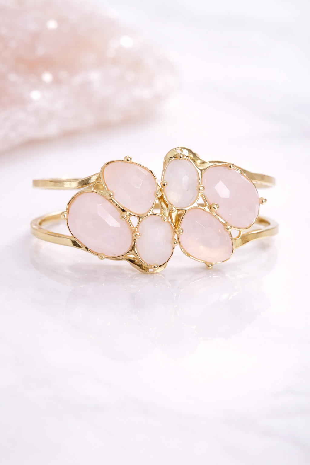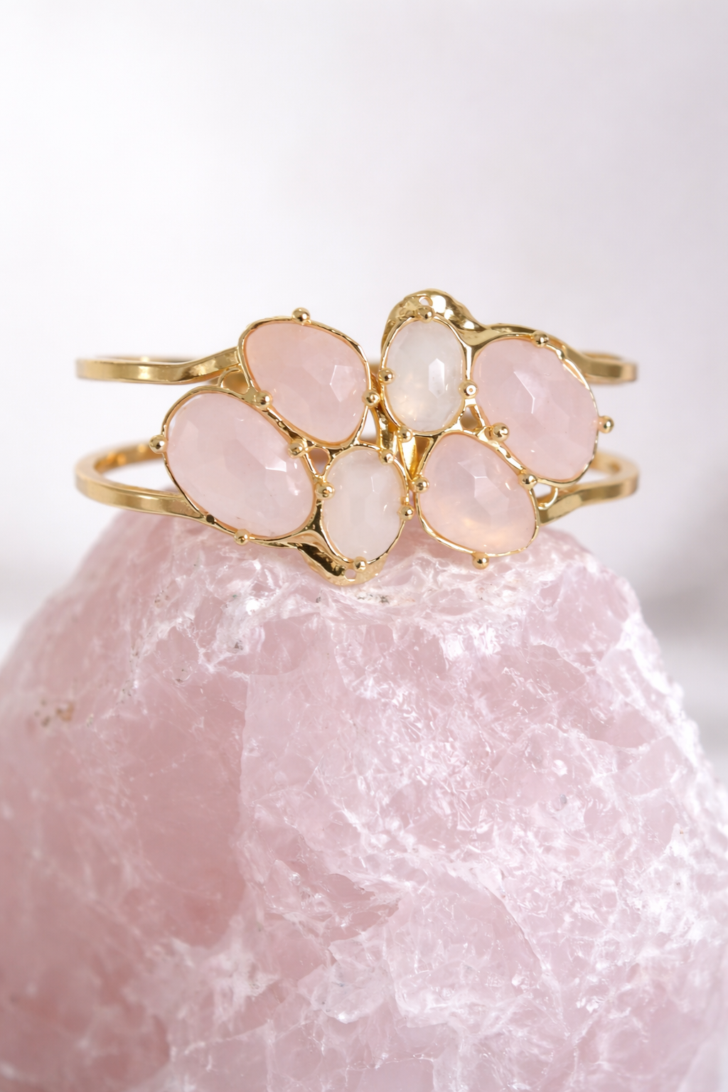 Bransoleta „Różana Aura” – elegancka obręcz z kwarcem różowym na miłość