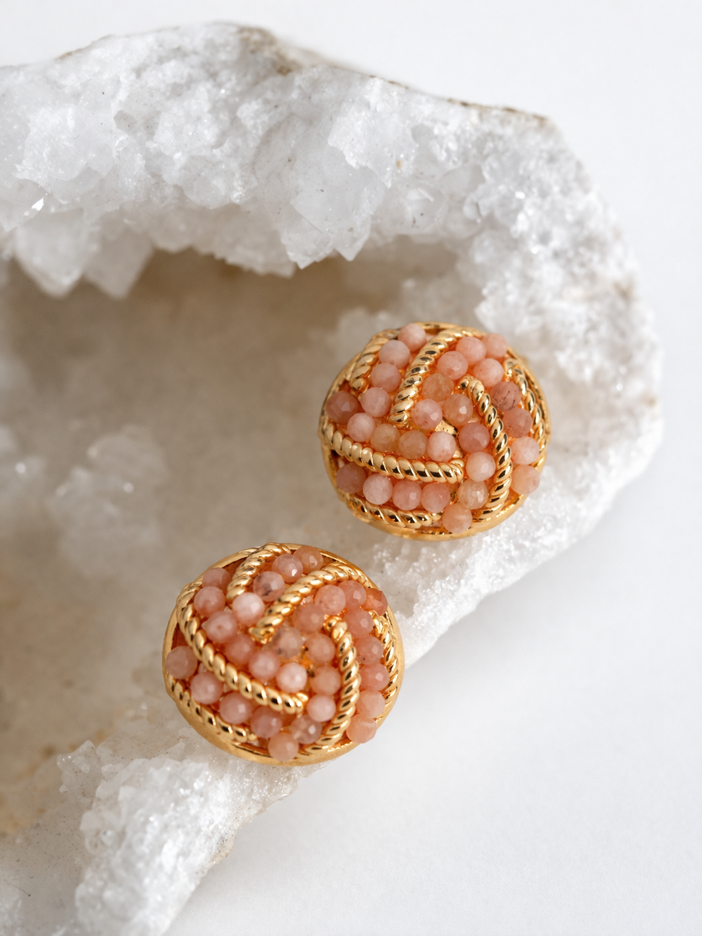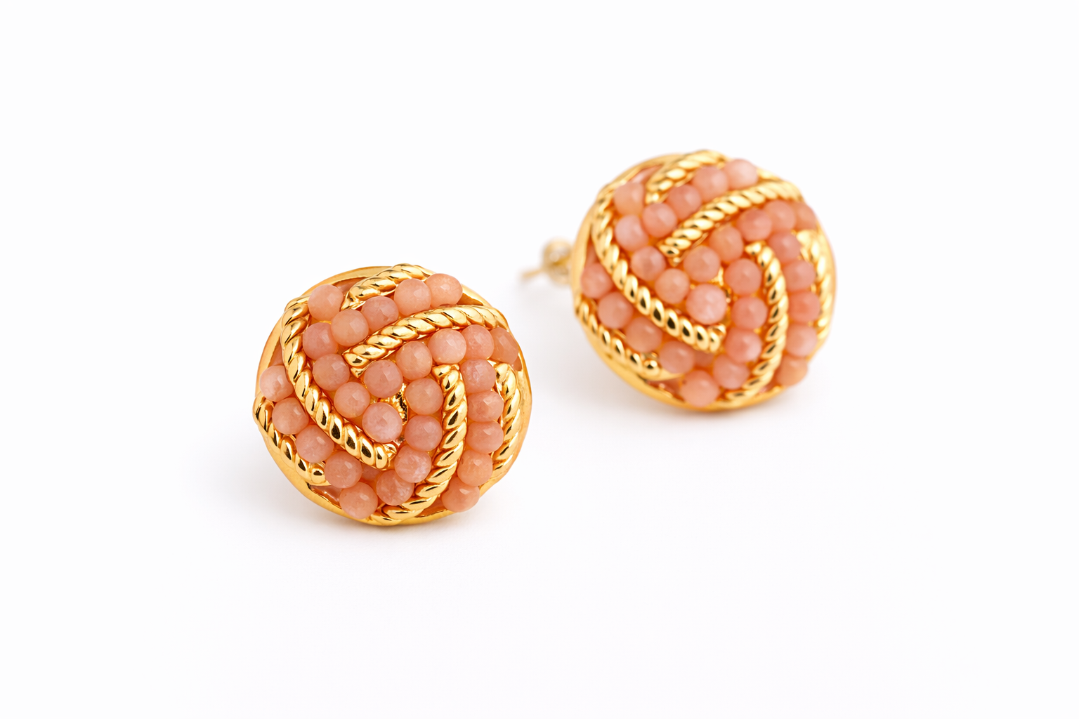 Ich okrągła forma podkreśla harmonię i pełnię, a subtelne plecenie dodaje lekkości oraz unikalnego charakteru. Delikatny połysk kamienia pięknie odbija światło, przyciągając spojrzenia i dodając twarzy promiennego wyrazu.