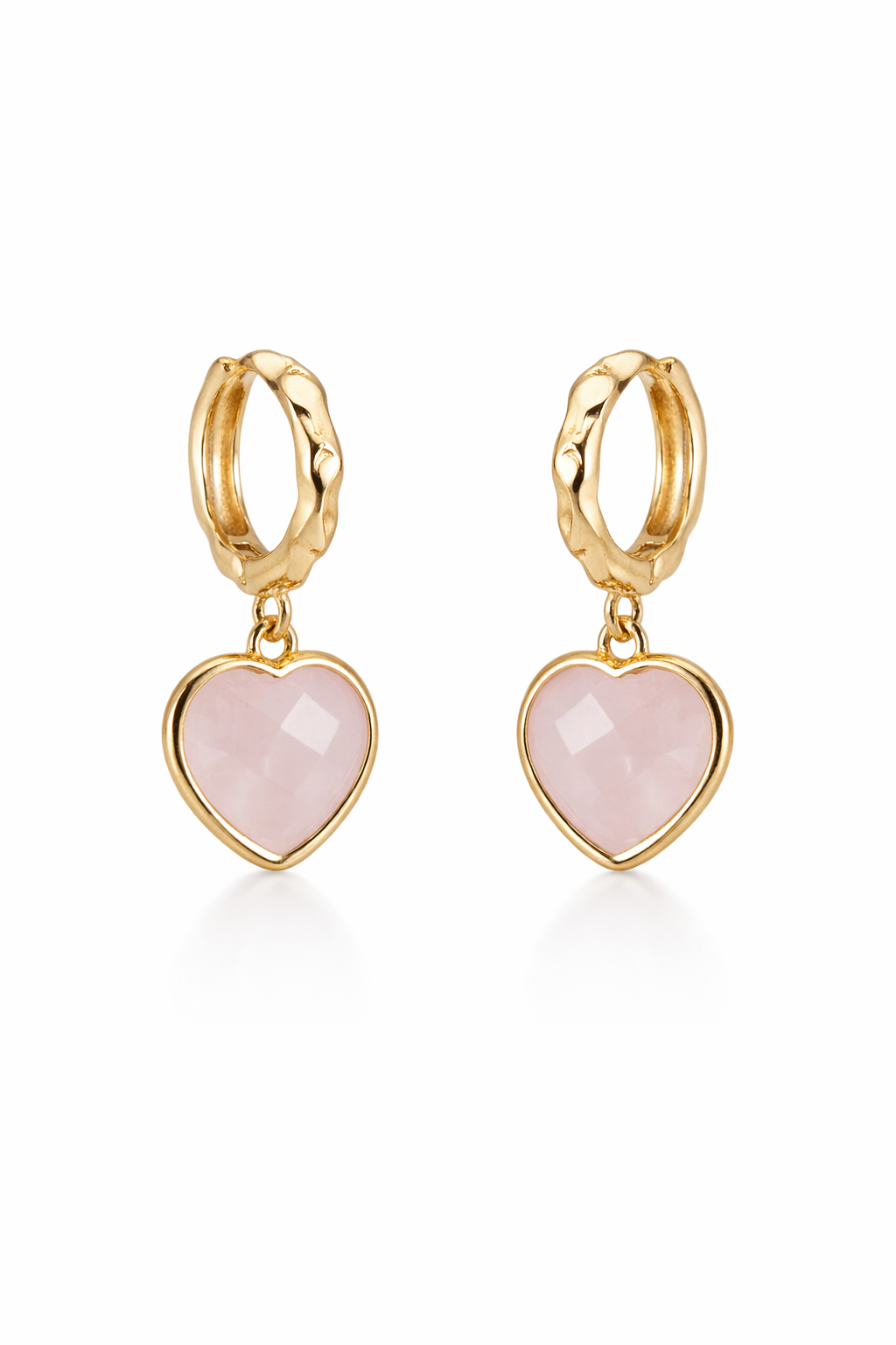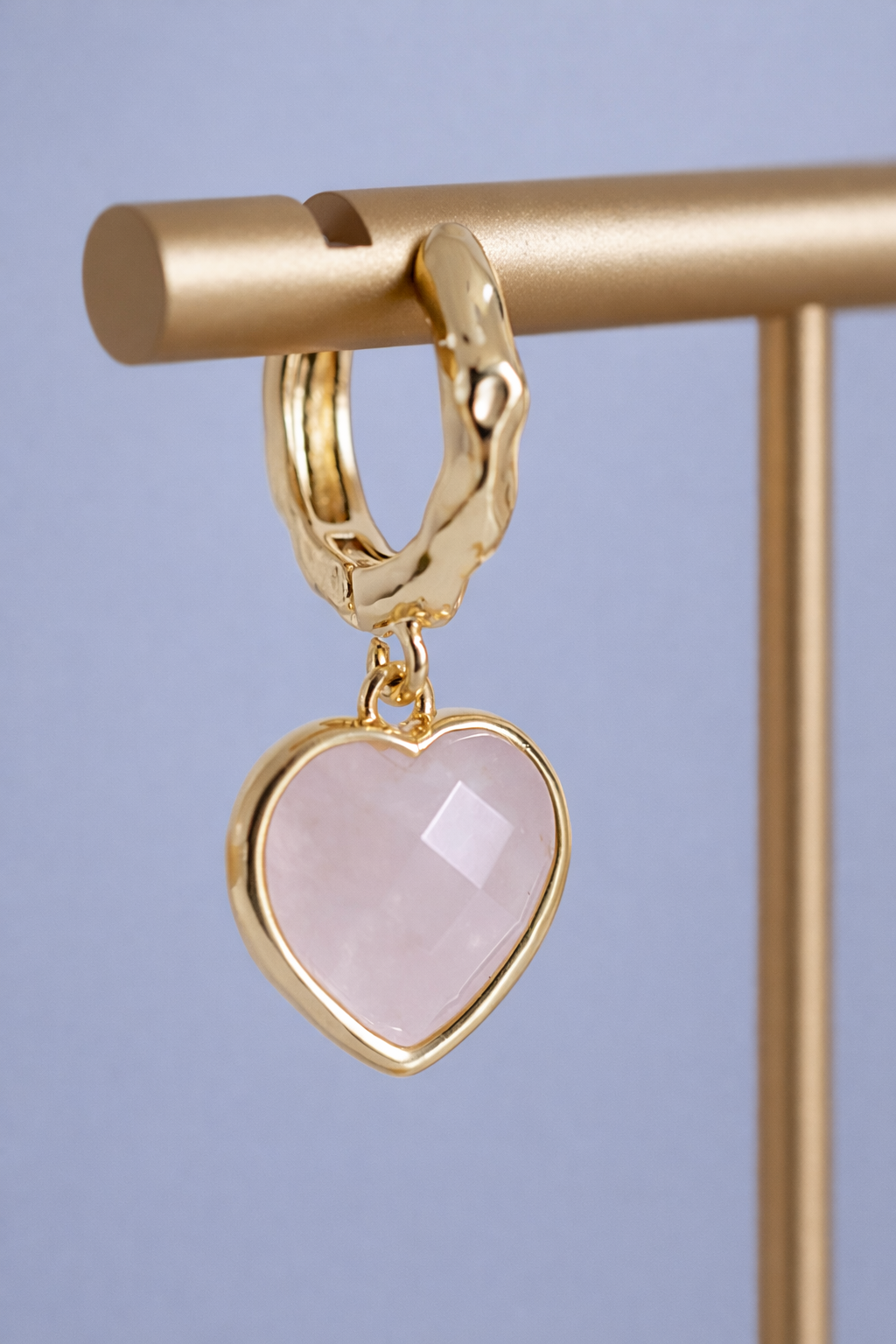 Dodaj blasku i subtelnej romantyczności każdej stylizacji. Miłosne Echo to eleganckie kolczyki w kształcie kół, które odbijają światło w wyjątkowy sposób. Delikatne, fasetowane serca z kwarcu różowego zawieszone w środku dodają kolczykom miękkości, romantyzmu i symbolicznej mocy miłości.