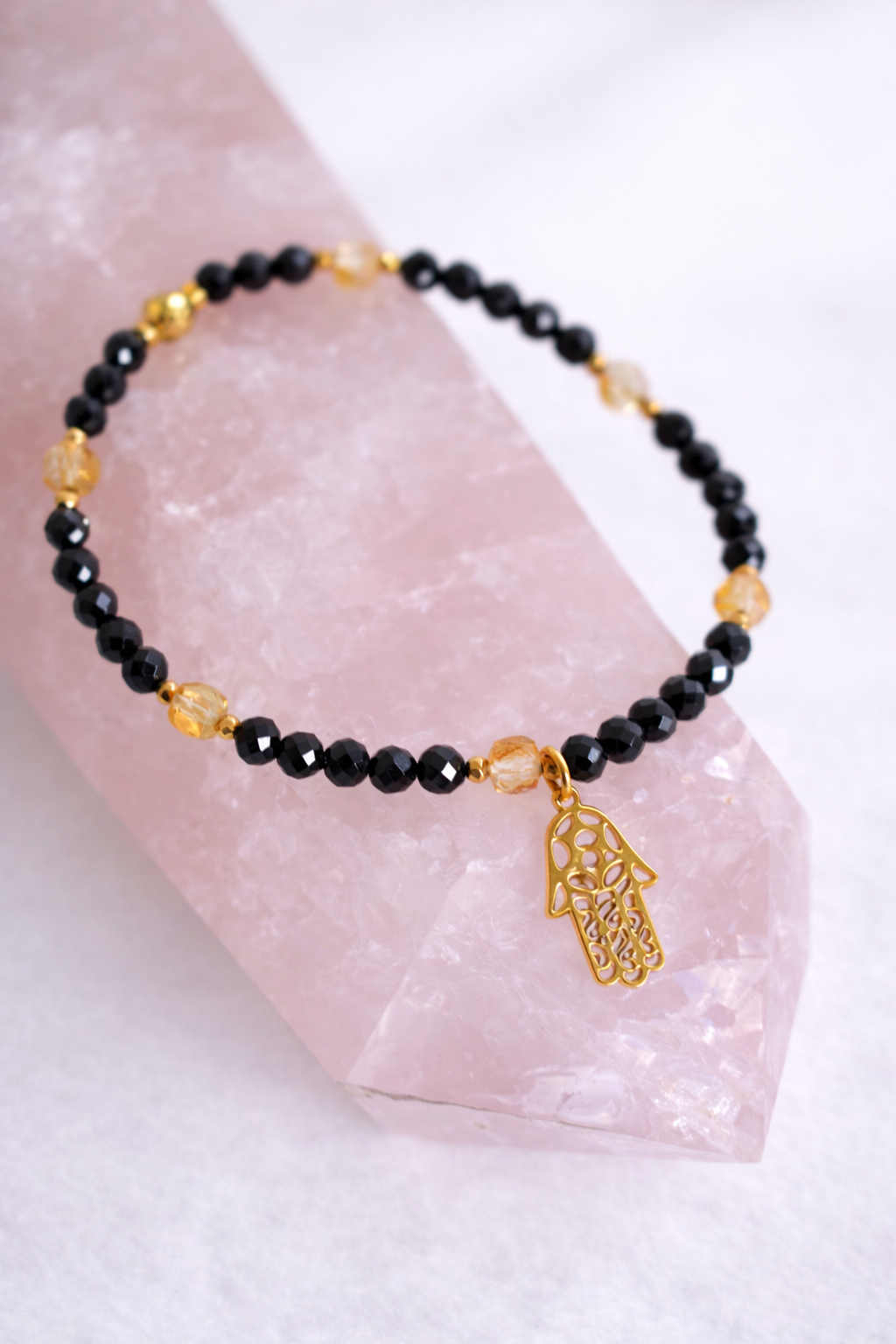 Ochronny Blask – bransoletka z czarnego turmalinu, cytrynu i zawieszką Ręki Fatimy