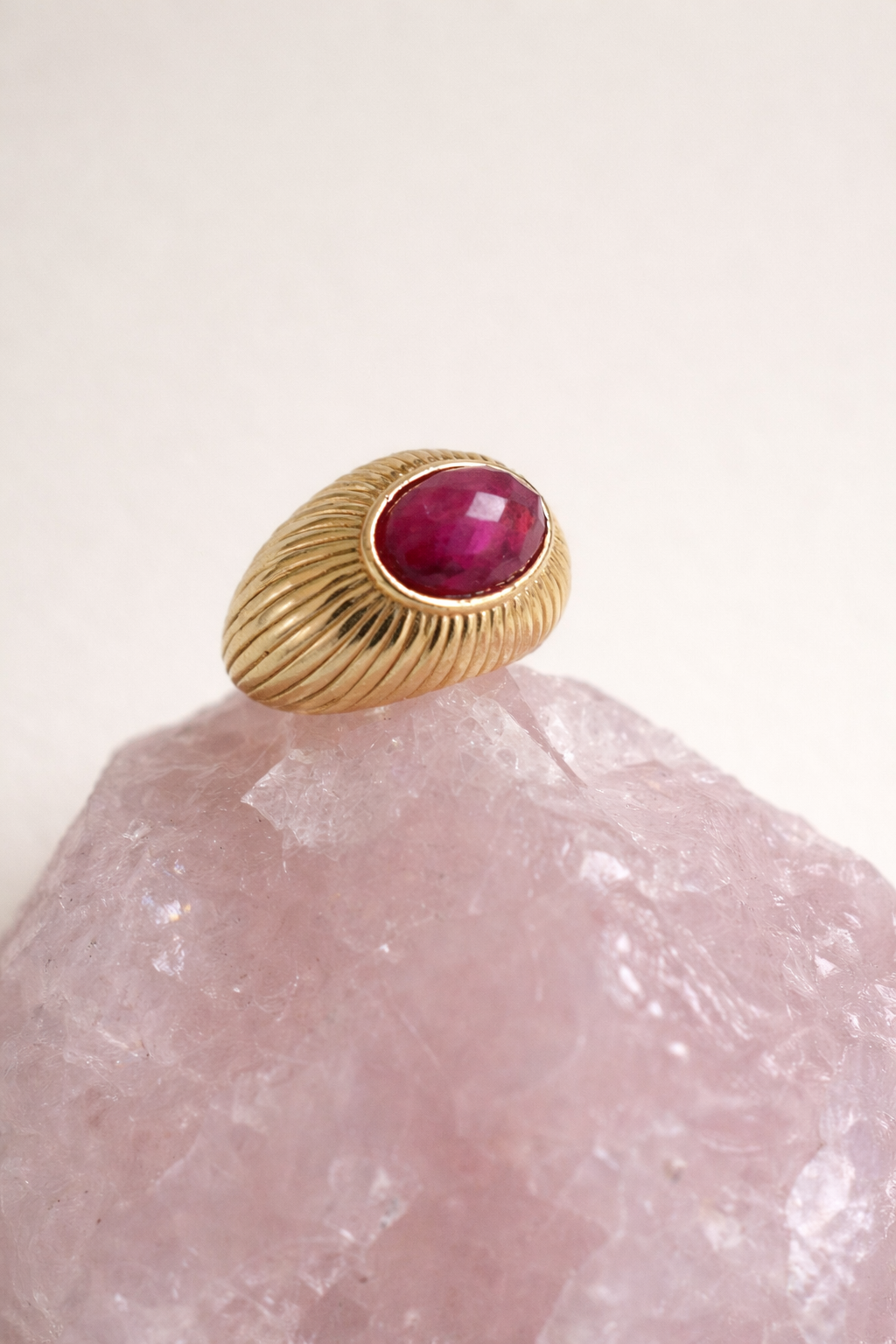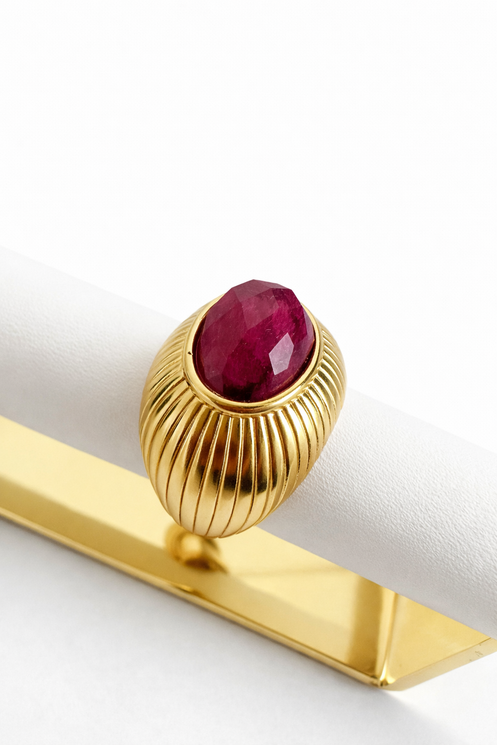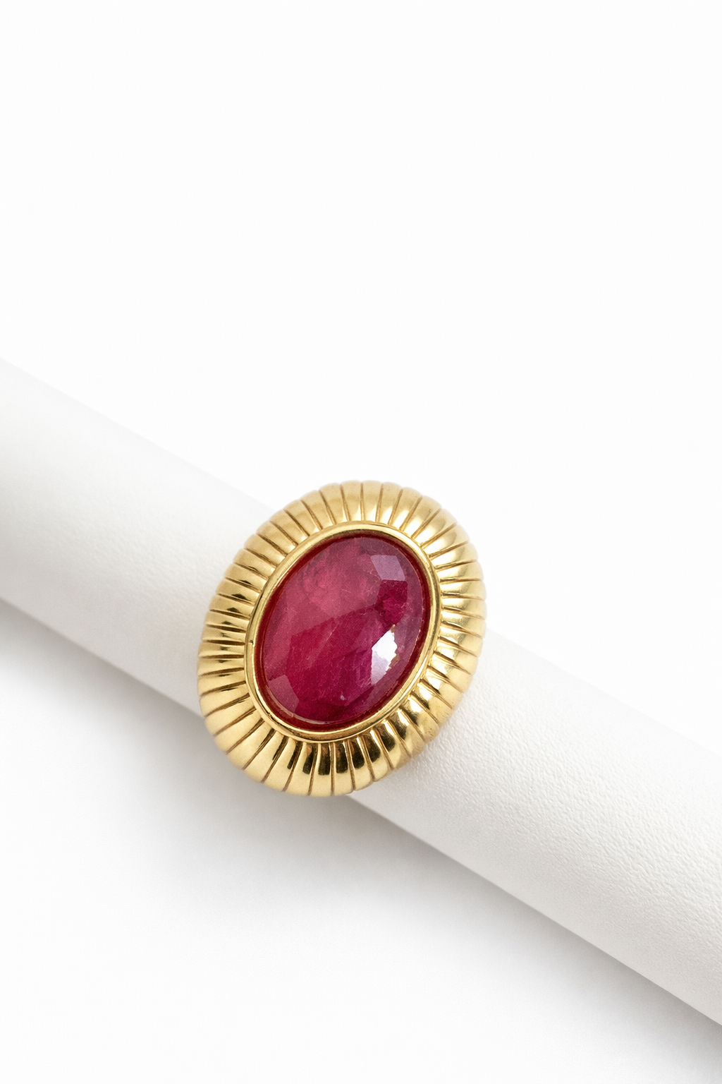 W jego centrum znajduje się naturalny rubin – kamień miłości, odwagi i życiowej energii. Od wieków uznawany za jeden z najsilniejszych kamieni, który rozbudza pasję, wzmacnia pewność siebie i przyciąga głębokie, prawdziwe uczucia.