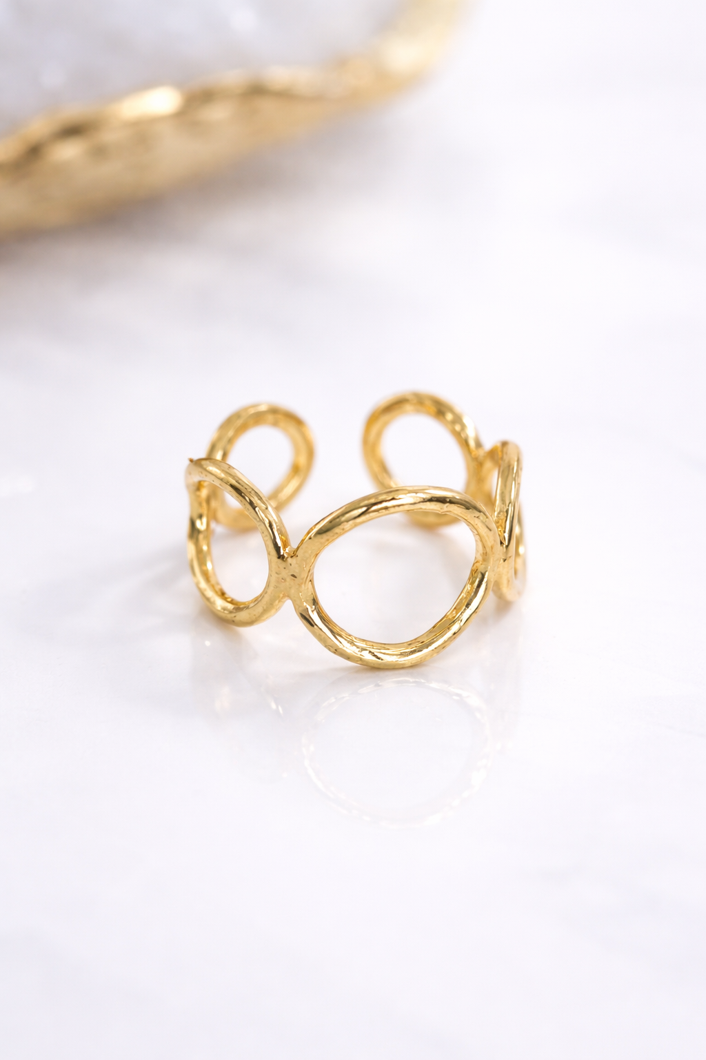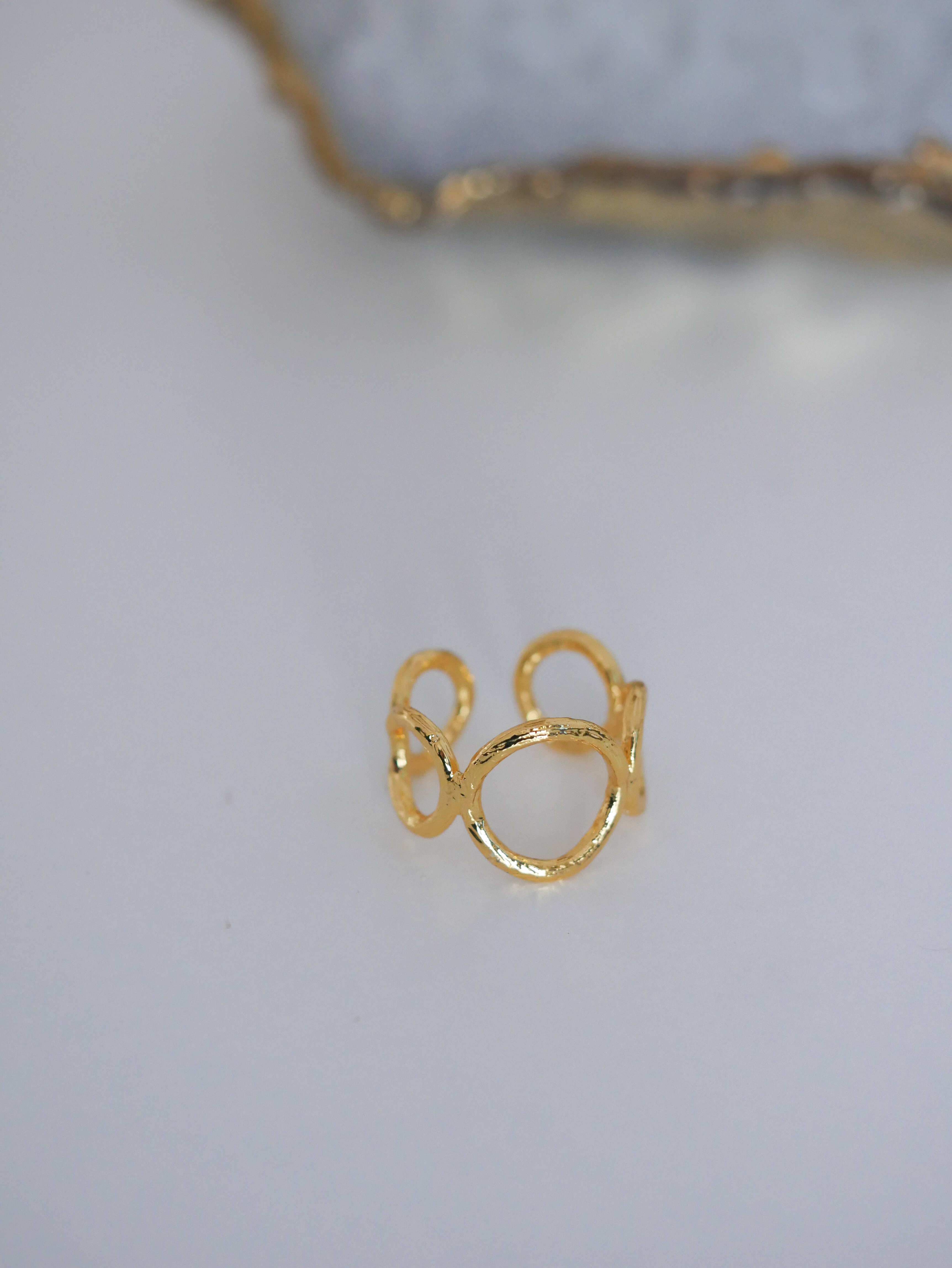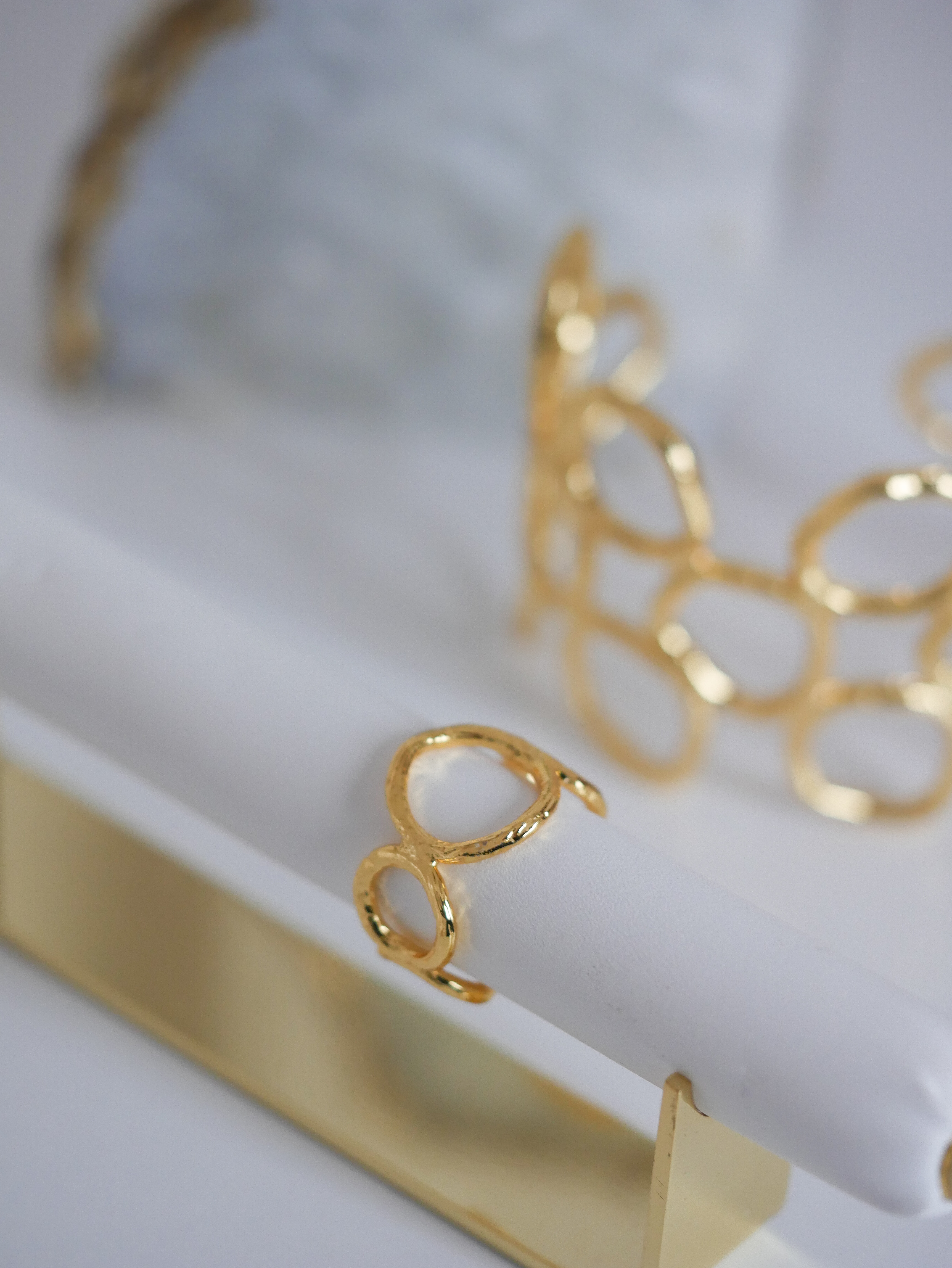 Pierścionek świetnie sprawdzi się solo lub w zestawieniu z bransoletą i kolczykami z tej samej kolekcji, tworząc spójny, nowoczesny look.