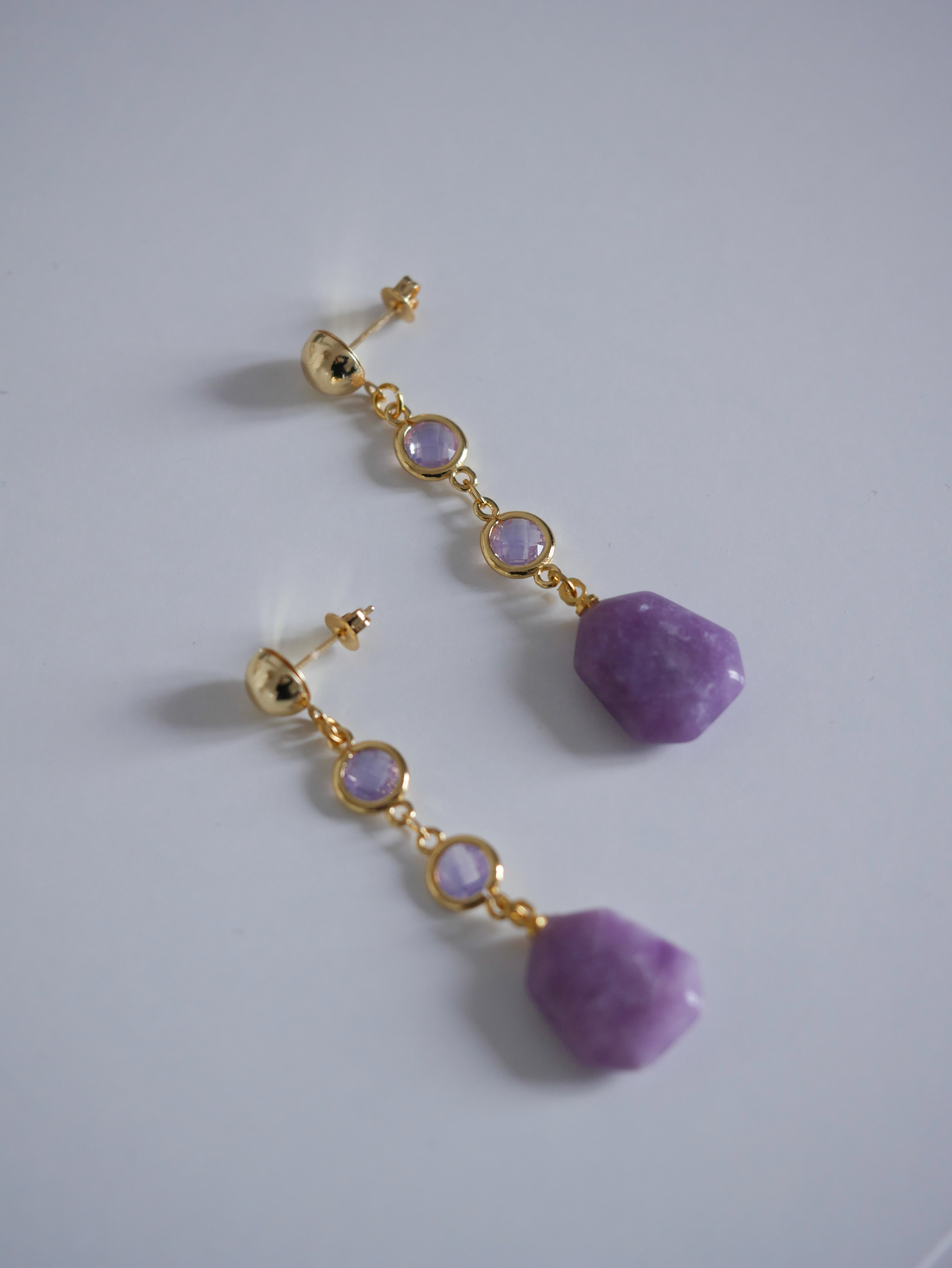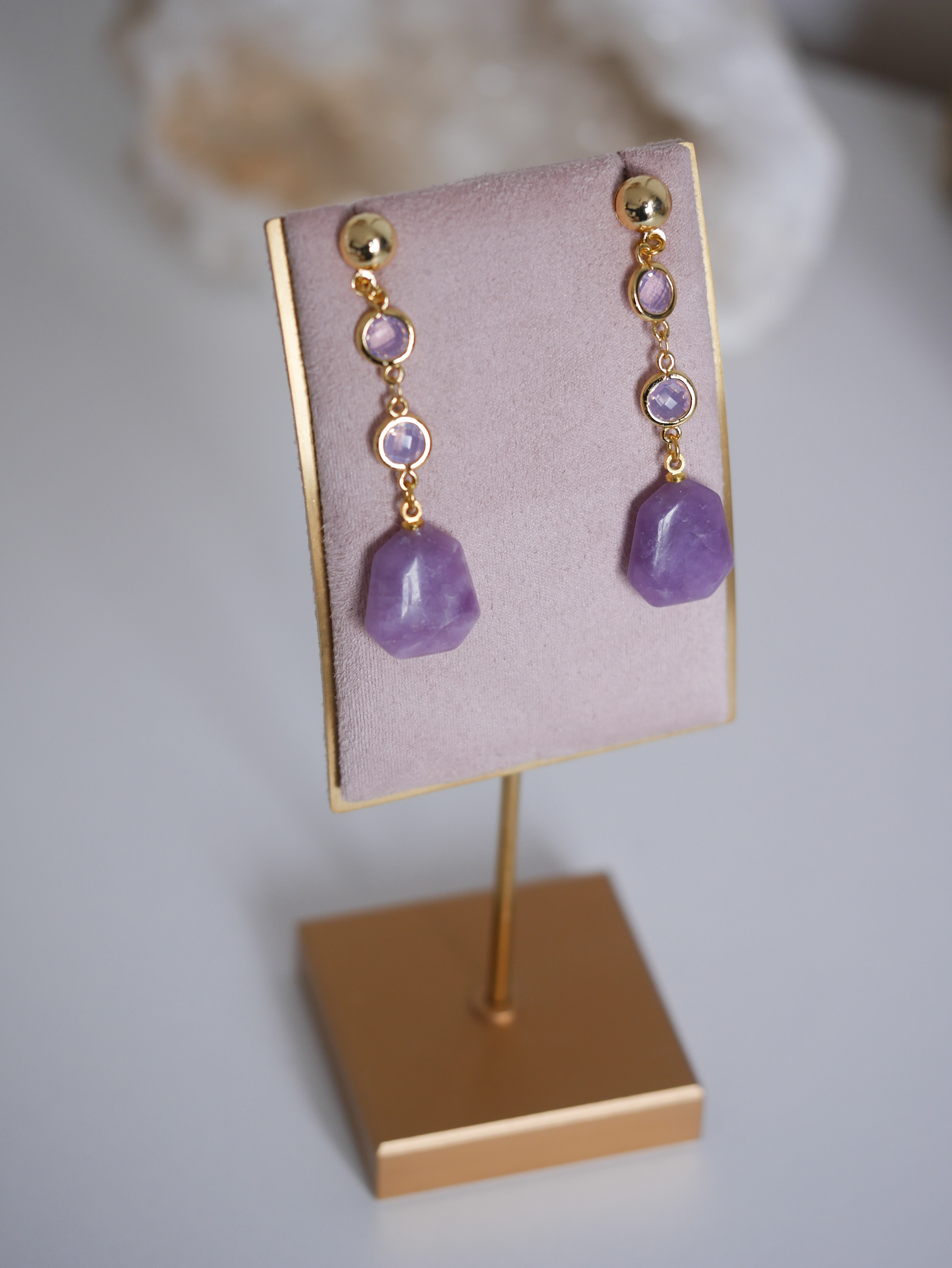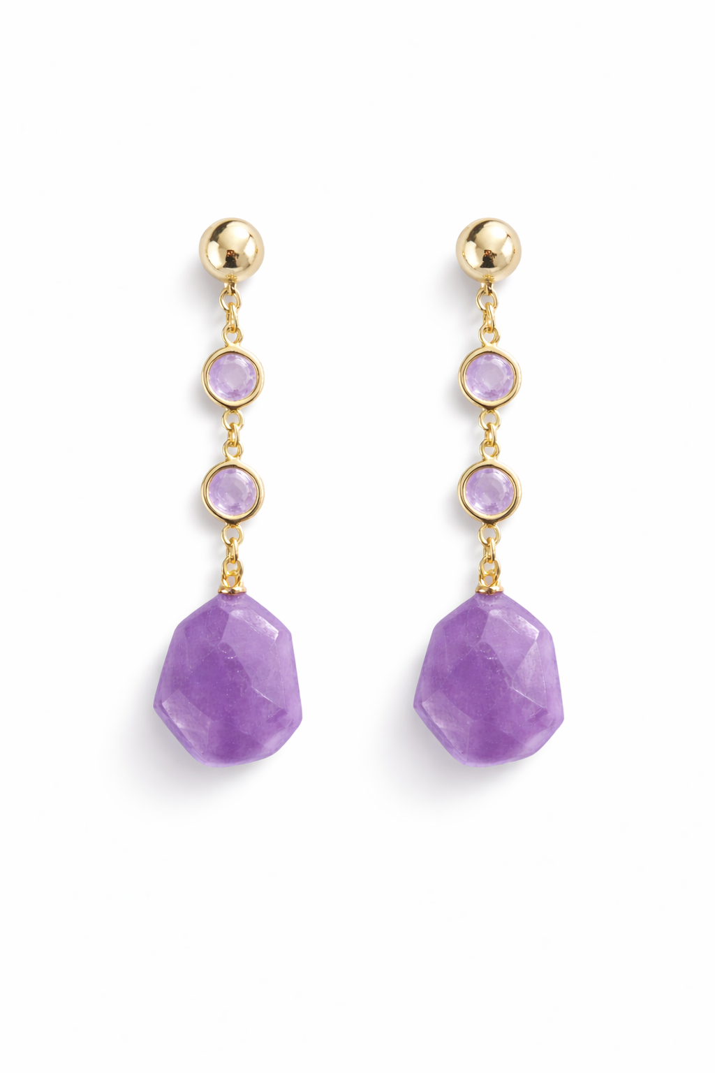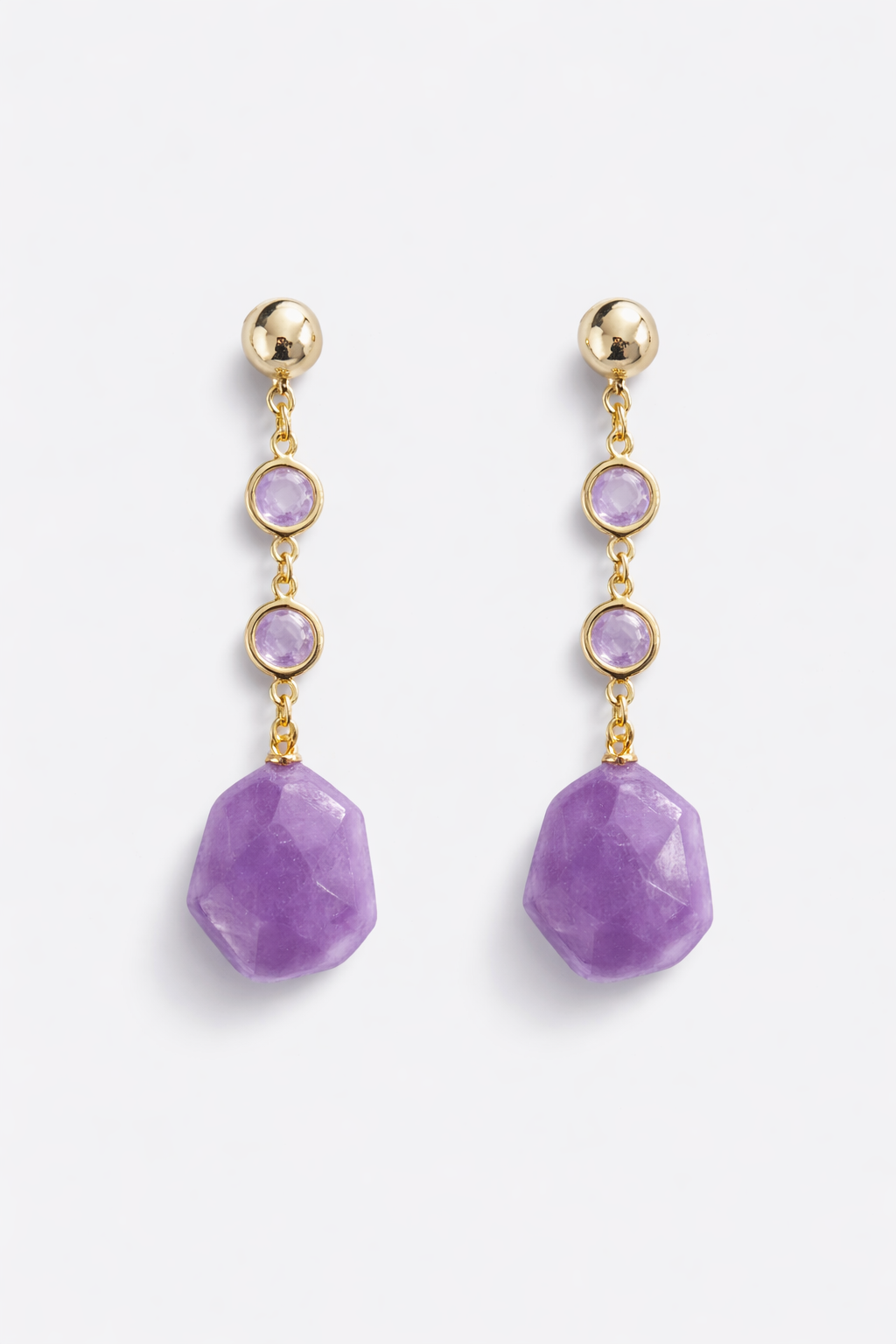 Wiszące Kolczyki „Fioletowy Blask” z Ametystem i Kryształkami