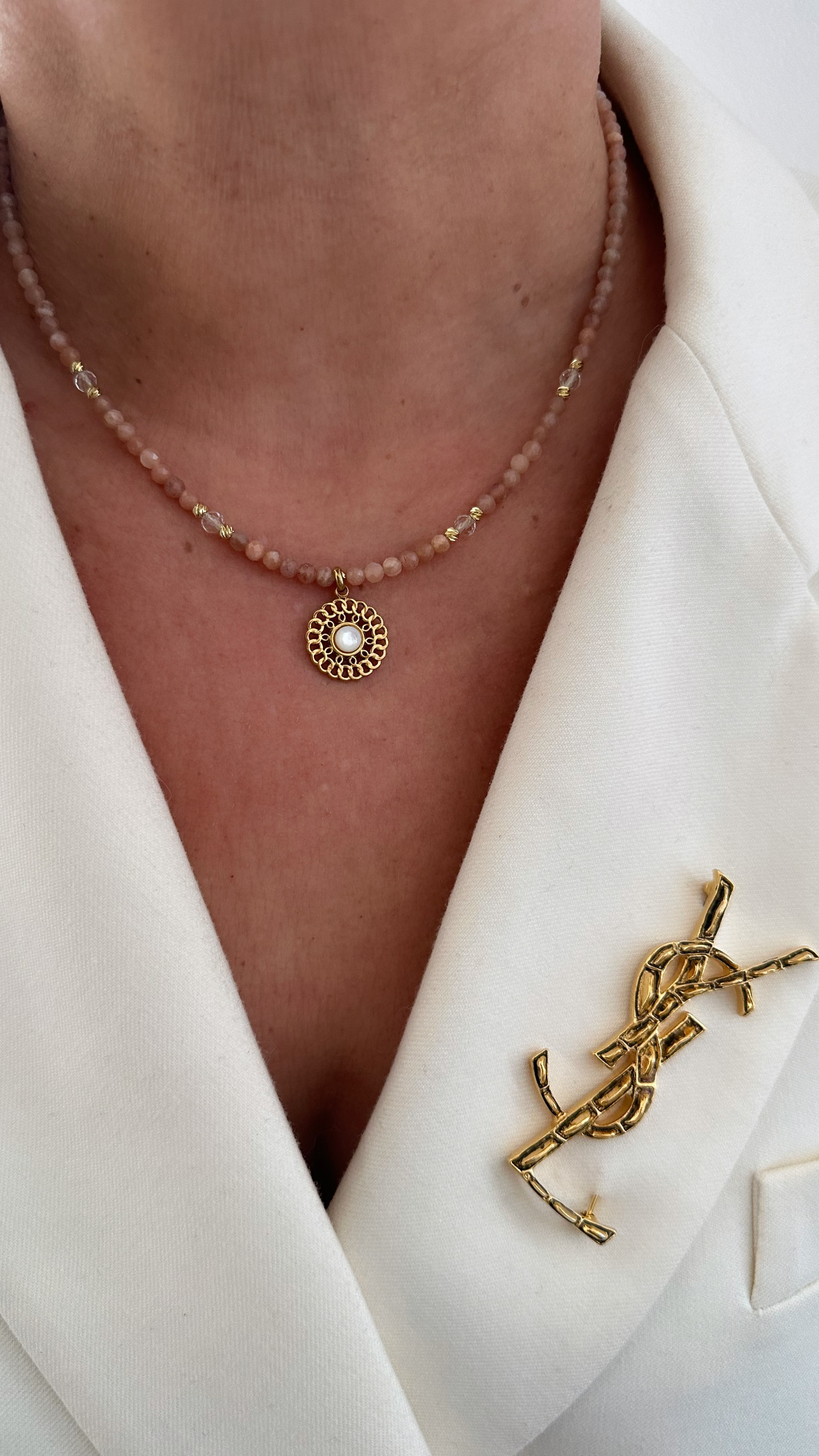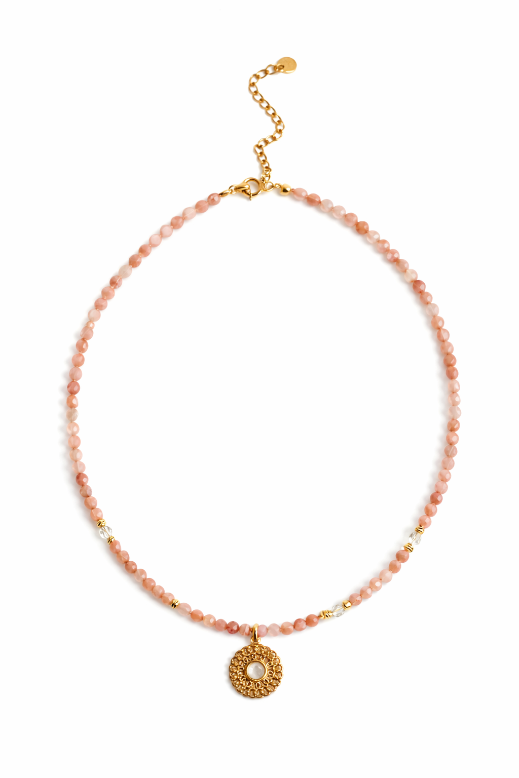 Rozświetl swój dzień naturalnym blaskiem. Złota Energia to wyjątkowy naszyjnik, który łączy w sobie ciepło kamienia słonecznego i świetlistą moc cytrynu – duet symbolizujący radość, pewność siebie i pozytywną energię.